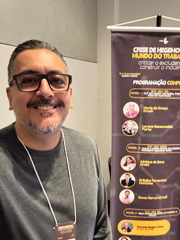 Nos dias 13 e 14 de novembro, Gabriel também participou do seminário “Crise de Hegemonia e Mundo do Trabalho: Criticar o Excludente, Construir o Inclusivo”, no Hotel Intercity Paulista. O encontro reuniu advogadas e advogados trabalhistas, estudantes, sindicalistas e representantes de movimentos sociais para discutir desafios atuais e propor caminhos para um direito do trabalho democrático e alinhado às necessidades da classe trabalhadora.